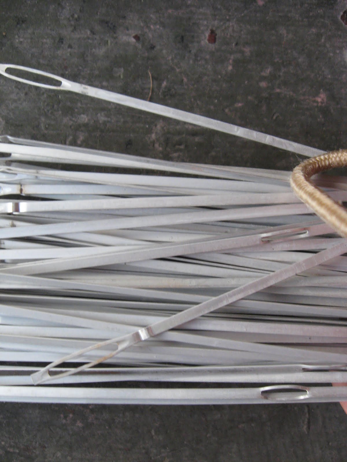 raddle and rods in a milk can , a bench and a basket of yarn. When we were about to leave Bill says to my husband "oh you know we have MORE YARN in this little storage closet. Yeah, I got that too, my son had the morning off and my hubby took a personal day, they went to get my loom and yarn, according to my son I should consider renting an apartment just to store this "stuff", I didn't answer him but I thought well if you moved out.......... that's another post.